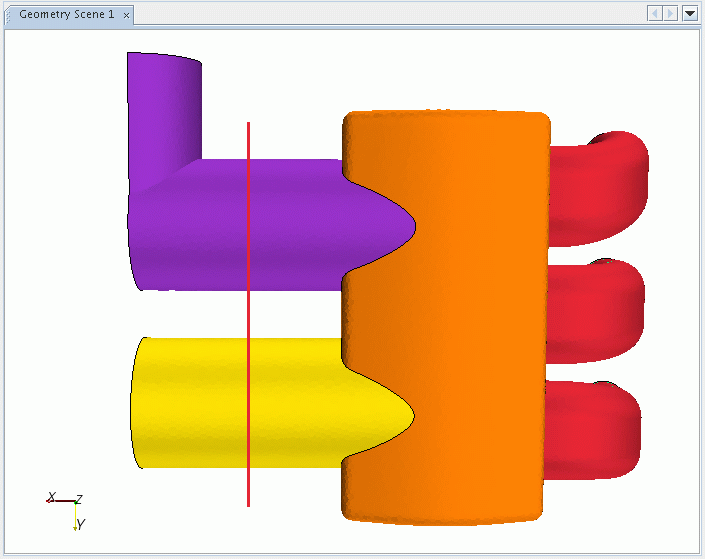 假设希望沿 X 方向分割两个紫色和黄色边界,如下面的屏幕截图所示。