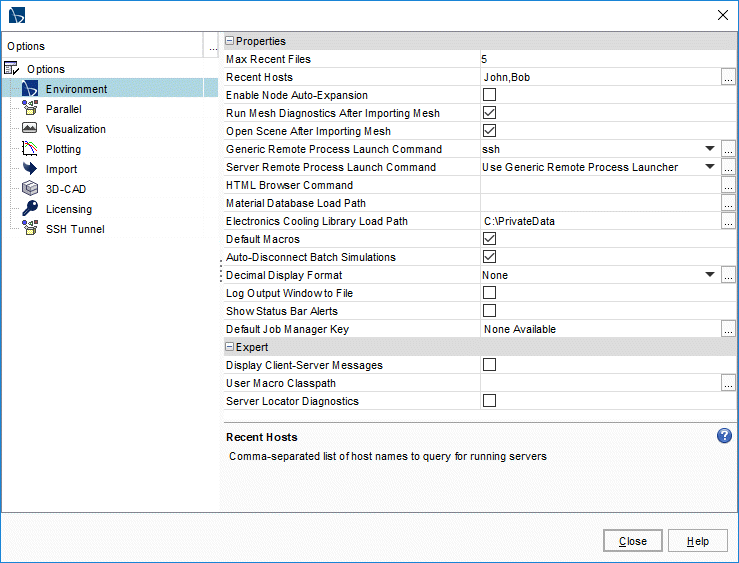 The Options dialog is used to control a number of global options in Simcenter STAR-CCM+. The choices you make are stored in a properties folder that is unique for each version of Simcenter STAR-CCM+ you run on your machine.