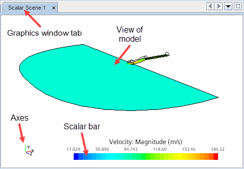 图形窗口包含一个选项卡和一个显示区(空白区域,其中有图像和其他小部件)。选项卡的命名与对象树中的节点命名相同。如果一次打开了多个模拟,则选项卡会包含相应模拟的名称。可通过双击树中相应的场景节点来打开图形窗口。如果特定场景的窗口已打开,但不处于活动状态,则可以双击相关模拟树节点,或在图形窗口中单击其选项卡。