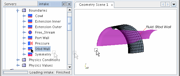 对象树中的节点用作可查看的有形对象。可以使用拖放方法将零部件添加到活动场景显示中。例如,可以将边界节点拖到图形窗口中: