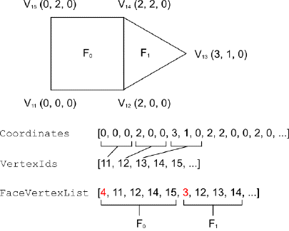 FaceVertexList 为不规则数组,其序列遵循以下模式: