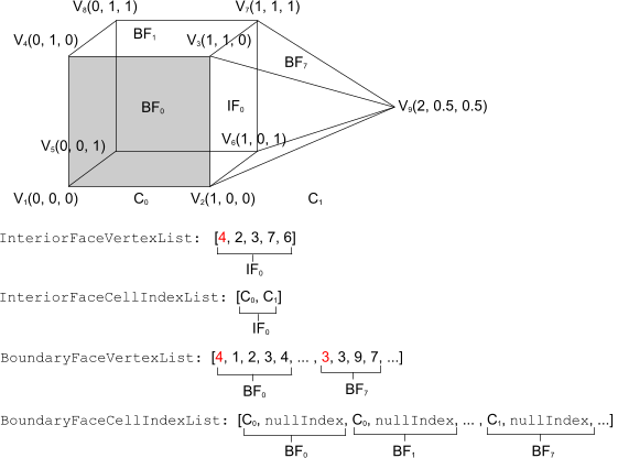 | BoundaryFaceVertexList | 整型数组 | Sum over all boundary faces (Face Vertex Count + 1) |