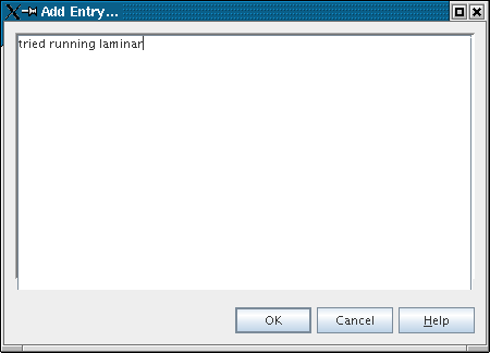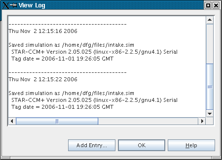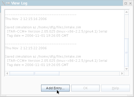 还可以为日志提供自己的注释。 例如,如果想要指出您已尝试特定的 CFL 数、已切换模型,或已导入特定类型的文件,则可以执行此操作。 当然,不会获得每个日志点的结果记录(尽管可以自行在日志中添加关键结果)。 但是,若能尽量记下已尝试的选项,则这些项在未来可能很有用。 要将项添加到日志文件中,查看日志,然后在查看日志对话框中单击 添加项目... 按钮。