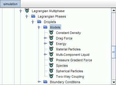 对于拉格朗日相 Droplets,按顺序选择以下模型:
