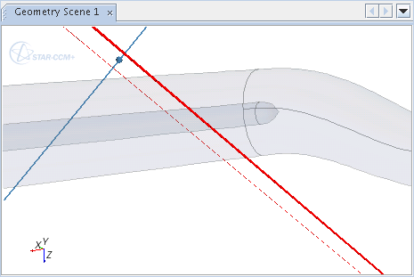 小部件显示为具有法向矢量的平面;该平面由边界框包围。 平面和边界框的相交边显示在套管中。