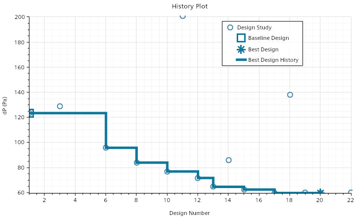 10 SQP 外部迭代后,压降从 123.2 Pa 降至 59.7 Pa。如果要继续 SQP 搜索,可以将最大外部迭代次数增加到 15。