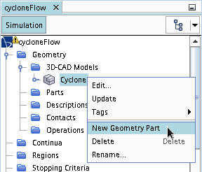 要在模拟中使用 3D-CAD 几何,首先将模型转换为几何零部件,然后将这些零部件分配给区域。在创建区域后,可在流体边界上定义边界类型。