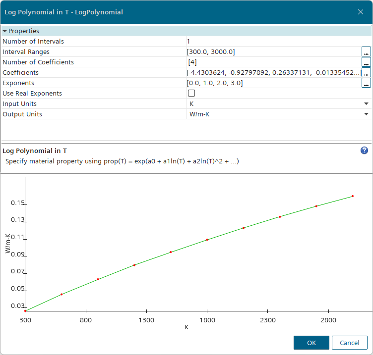 - 可用于定义指定导热率的对数多项式。单击自定义编辑器 (
