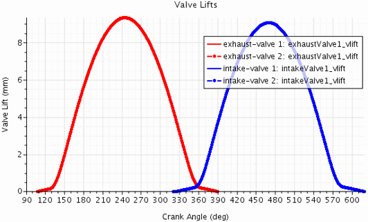 表只能提供阀门升程期间的数据,在零升程处开始和结束。对于循环的剩余部分,Simcenter STAR-CCM+ In-cylinder 自动应用零升程。如有必要,Simcenter STAR-CCM+ In-cylinder 会自动将适当的偏移应用于曲柄角度数据,从而可以自动处理多个循环。