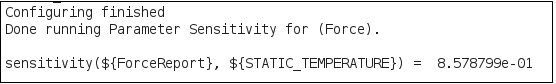 - 创建表达式报告,并将定义设为灵敏度 (${reportName},${parameterName})。reportName 是成本函数报告,parameterName 是标量或矢量边界输入参数。例如,对于翼型周围的流体,为了分析远场温度对力成本函数的影响,将定义设为灵敏度 (${ForceReport},${STATIC_TEMPERATURE)。