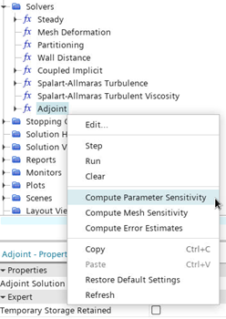 伴随参数灵敏度可用于计算给定全局参数对相关成本函数(目标)的影响。针对任何类型的伴随流体分析,都可以使用参数灵敏度来研究模拟边界条件如何影响工程目标并可能优化这些条件。