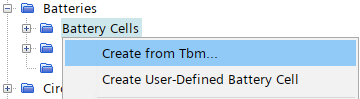 - Reloads the battery cell data from a .tbm or .ebm file. This option allows you to update the battery cell if you change the .tbm or .ebm file.