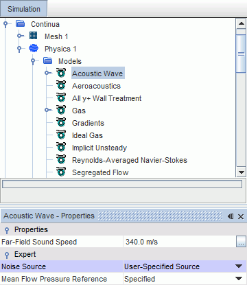 可以创建用于测试或校准模型的用户自定义噪声源。在流体网格中指定特定(或多个)网格单元的源压力场。该压力场随后传播到流体区域。