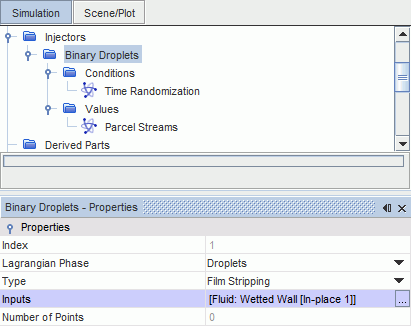 设置拉格朗日喷射器,为液滴保留液膜并喷入总体流的液膜表面建模。