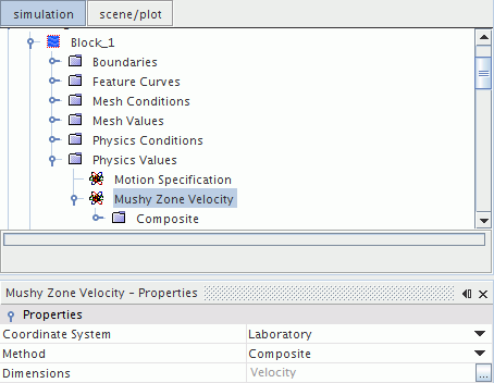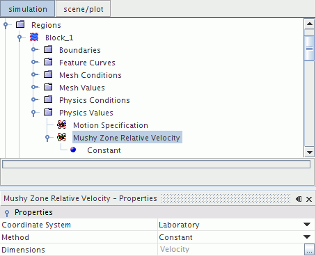 通常,两相区渗透率模型会应用动量源项来停止固化液体的流动。 停止流动的方法为,将相对于基准坐标系的对流速度减小为零。