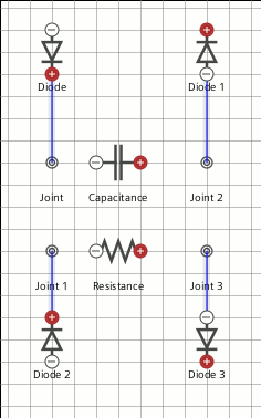 对于副电路,在二极管与电容和电阻元件之间的连接处添加接头。