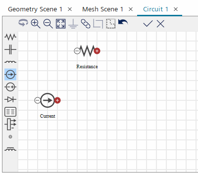- 在电路编辑器中,单击主电流源的正极端子。