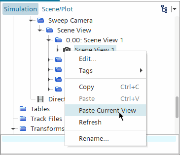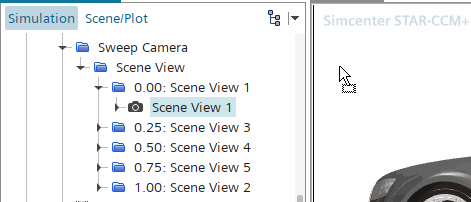查看相机视图属性时,可以将 [场景视图] 节点从关键帧拖到图形窗口中。视图将更新以反映关键帧中所包含的属性。