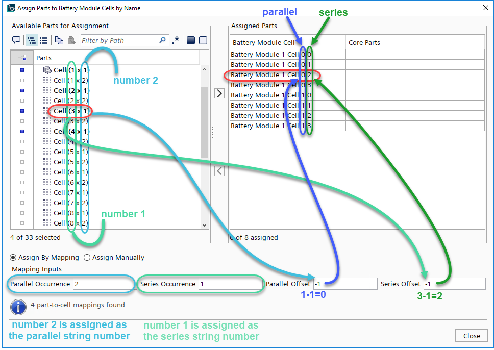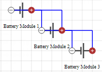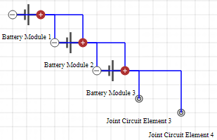 - 提供创建串联电路元件对话框,可在其中设置模块的顺序并指定串联电路是从第一个电池模块的正极还是负极端子开始。在对话框中单击确定时,将为每个选定电池模块创建电路元件,并串联这些模块。