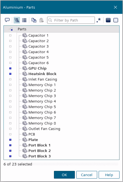 在铝对话框中,选择铝制成的部件:
