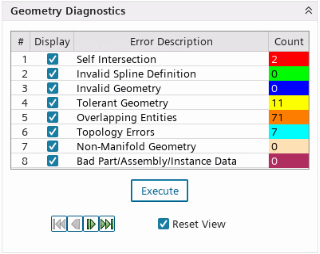 该工具分析几何中是否包含 Parasolid 无效部分,并在几何诊断面板中显示结果。