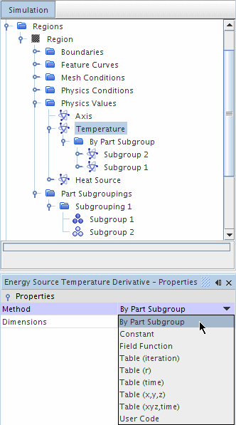 使用多个子组只是为了将不同的物理量应用于不同的零部件集合。 例如,假设体积热源在零部件 A 和 B 中具有唯一值,但孔隙率在零部件 B 和 C 中具有唯一值。可以定义一个子分组用于子组包含零部件 A 和 B 的体积热源,并定义另一个子分组用于子组包含零部件 B 和 C 的孔隙率。