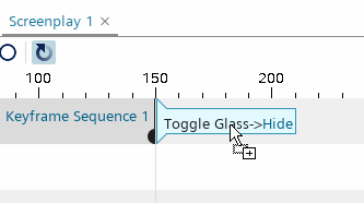 在剧本编辑器中,要使关键帧序列超链接在切换玻璃动作上可见,单击