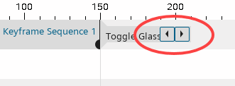 通过此方法,可以创建两个关键帧序列,以控制不同的属性,但对齐到同一动作时间范围。通过单击动作块中的左/右箭头按钮,可以在关键帧序列之间切换。