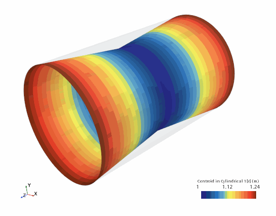当用于指定方格速度的场函数中未构建任何时间限制因子时,如果较长时间运行模拟,圆柱体将继续收缩。
