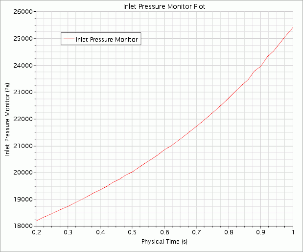 修改入口压力监视器绘图的范围以查看介于 0.2 s 和 1.0 s 之间的求解。