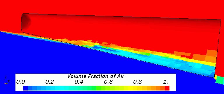 示例如下:整个湿润的船体表面覆盖了一层空气,该空气层厚度约为第一个网格单元层高度的 0.3。 由于空气的粘度比水低,因此模拟结果显示船体上的阻力减小。
