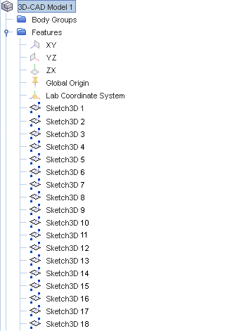 可以导入存储在单个文件中的多条闭合 3D 曲线。 不支持导入多条打开的 3D 曲线。 3D-CAD 会在导入文件中查找相同的节点,然后将这两个点之间的所有对象分类为一条 3D 曲线。 因此,每条 3D 曲线都将闭合,无论它们在 .csv 文件中是打开还是闭合。 可以使用一个空行分隔 .csv 文件中的每条 3D 曲线。
