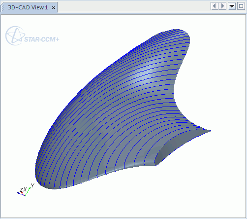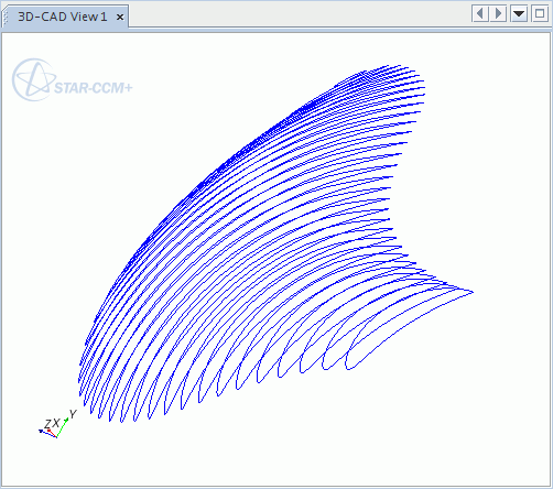 在以下示例中,构成通过螺旋桨叶片的截面的 3D 曲线将从单个 .csv 文件导入 3D-CAD。