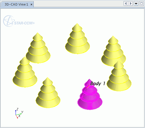 此时将创建模式。额外的体将会添加到 3D-CAD 对象树的节点。每个新体的名称是种子体的名称加上实例编号。例如,如果使用一个名为 Tree 的体创建包含 4 个实例的圆形模式,则新体将称为 Tree (n),其中 n 是体的实例编号。如果重命名种子体并单击更新按钮,则所有子体都会采用新名称加上实例编号,如前所述。