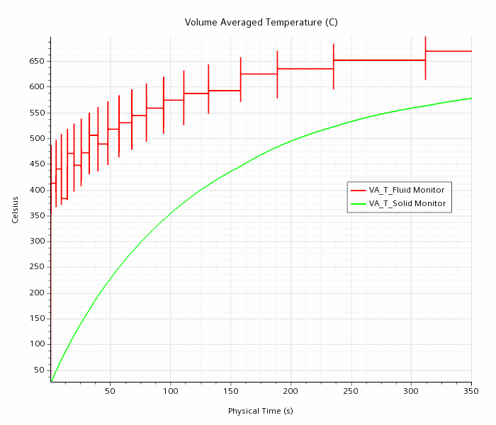 可以在绘图体积平均温度 (C) 中监视固体区域的加热过程。