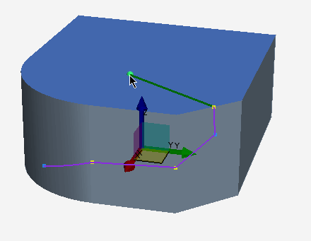 绘制一条约束到 CAD 表面的线。要在面上绘制一条线,需要至少单击鼠标两次。这条线可以跨多个面,只要相邻边上有一个点。在表面上移动鼠标指针时,表面会以蓝色高亮显示,以表示会将线约束到其中。在边上移动鼠标指针时,这些边会以黄色高亮显示。![]() |