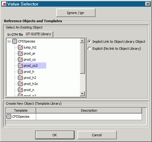 在 Value Selector(值选择器) 中,从 GT-SUITE Library(GT-SUITE 库) 选项卡中选择相关组分,并单击 OK(确定)。