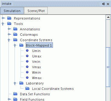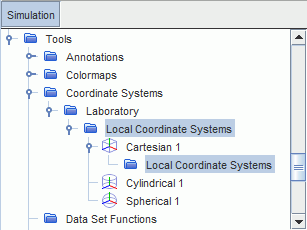 该坐标系在模拟树中由节点表示,此节点具有自己的属性和常用菜单项。此坐标系允许沿周期方向创建截面表面,并且具有其自己的场函数。