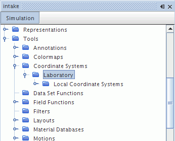 基准坐标系由 Laboratory(基准) 节点表示。此节点包含用于管理模拟中所有局部坐标系(及其衍生坐标系)的局部坐标系子节点。