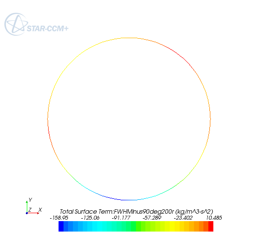 对于表面项,显示用于定义关联 FW-H 表面的同一零部件的标量函数。 下图显示了交叉流中圆柱体的总表面噪声: