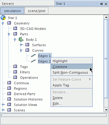 选择属于相同零部件的两个或更多个边节点,右键单击并从弹出菜单中选择组合: