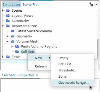 通过几何范围选项,可以根据完全包含在基于笛卡尔的方块(沿 x、y 和 z 方向延伸)内的网格单元来创建网格单元集。
