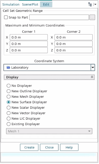 如果当前已显示有效场景,则可以图形方式或手动方式设置几何坐标的最小值和最大值。如果未打开场景,则可手动输入。