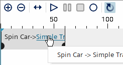 要验证汽车是否旋转,从剧本编辑器的左边缘拖动时间光标并将其移到 Spin Car 动作块的上方。