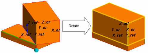 | 坐标系 | 定义用于旋转的坐标系。 可在基准坐标系或另一几何的局部坐标系中定义旋转。 请参见图形窗口中的 X_ref、Y_ref、Z_ref。 |