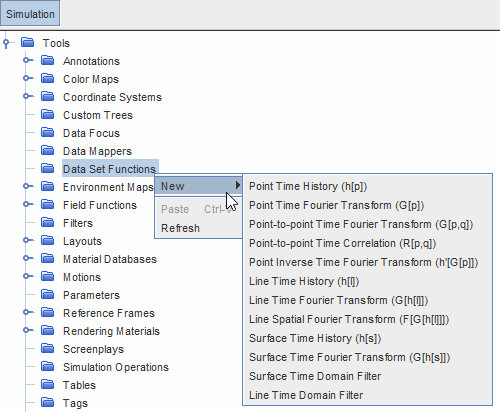 要添加数据集函数,右键单击节点,然后从弹出菜单的子菜单中选择类型。