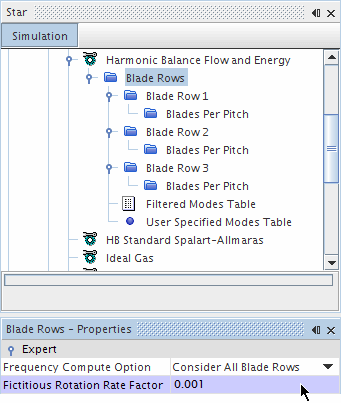 要设置假想旋转速率因子,选择叶片排节点,然后设置假想旋转速率属性的值。