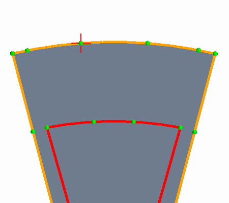 图形窗口以灰色显示源表面,并以黄色显示部件曲线轮廓。 - 单击(保存-恢复-选择视图),然后选择。
