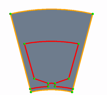 此块拓扑未处于块网格化的有效状态。块由四条曲线组成,并且当拓扑有效时,将显示为绿色。要生成正确的块,请分割当前的部分块曲线: