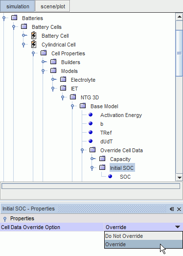 选择容量或 SOC 节点并设置相应的覆盖属性:
